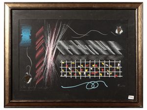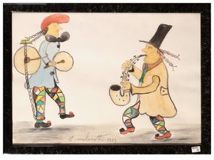 cm 30x46 coppia di tecniche miste su carta, firmate e titolate, in cornice