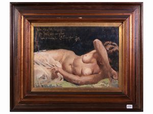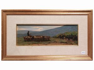 cm 37,5x70 olio su tavoletta, firmato, al verso titolato e firmato, in cornice
