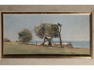 cm 14,5x30 olio su cartoncino, firmato Paoletti, firmato e datato al verso, in cornice