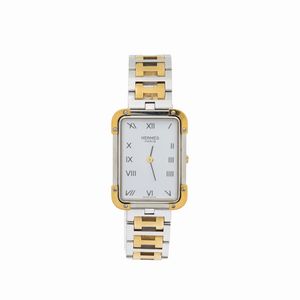 ann 90 circa in acciaio e metallo placcato oro, cassa rettangolare 31x23 mm. quadrante bianco con numeri romani, [..]