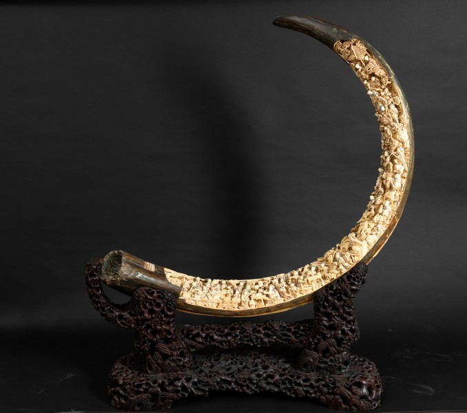 Non meno importante è un vaso in porcellana a nove pesche con pipistrelli, risalente alla Dinastia Qing durante il regno di Guangxu (1875-1908), che unisce la raffinatezza tecnica della manifattura alla potenza simbolica dei decori, legati a concetti di prosperità e fortuna. Stimato 6.000 – 8.000 euro. Chiude la selezione un’imponente zanna di mammut intagliata, decorata con una vivida scena di vita comune accompagnata da iscrizioni, opera del XX secolo che coniuga dimensione monumentale e attenzione per i dettagli; la sua stima è di 15.000 – 20.000 euro.