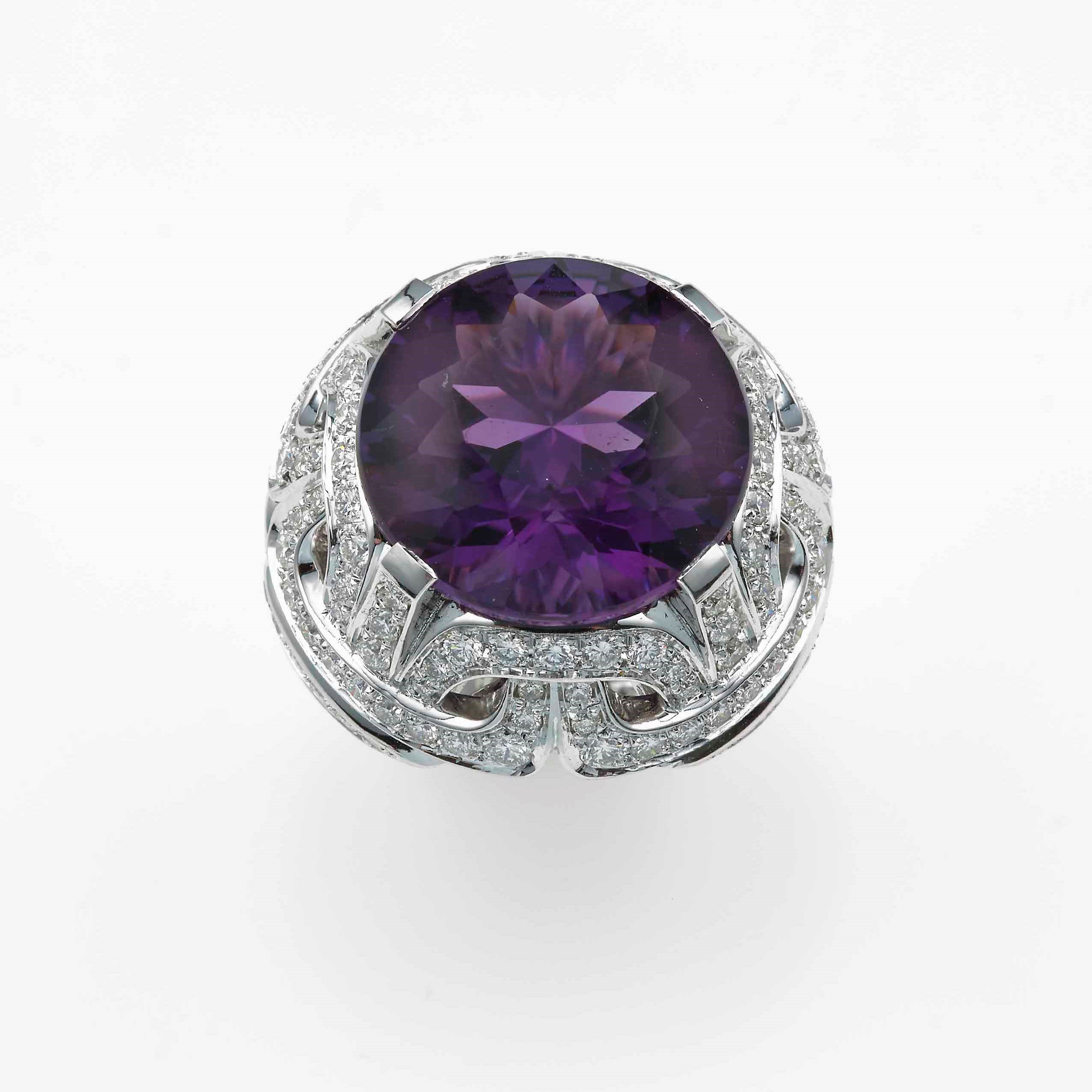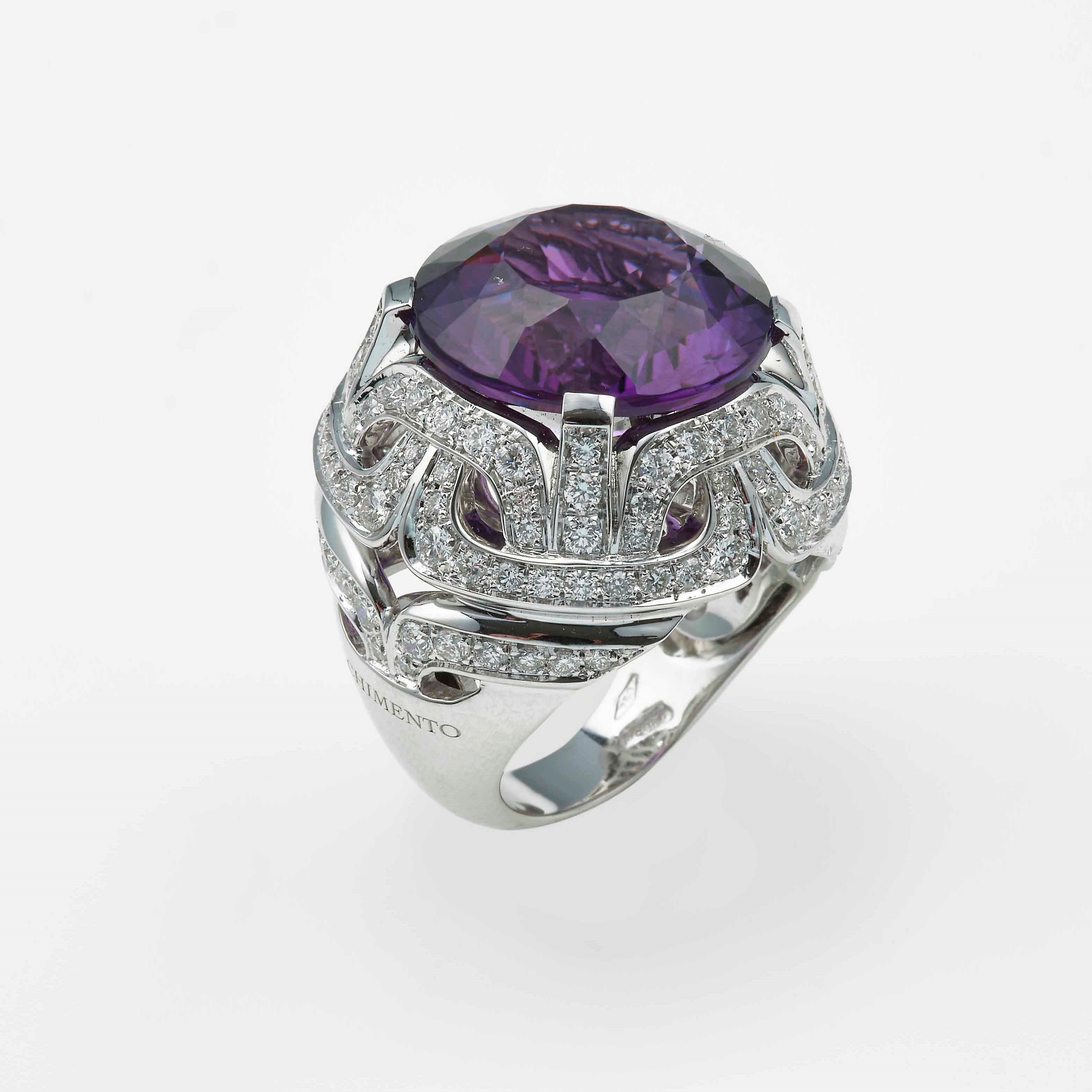 Modello Afrodite. Anello con ametista e diamanti per ct 2.29