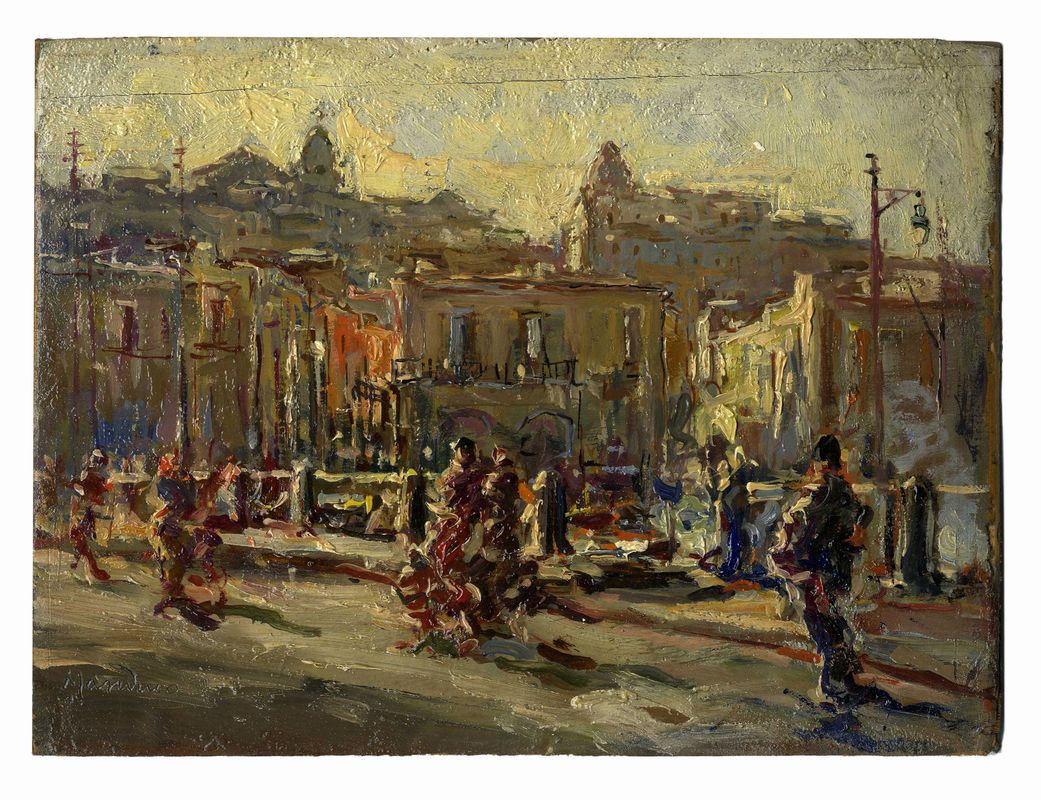 Olio su tavoletta. cm 16x22. Iscritto in basso a sinistra. "Manduco". Titolato a matita al verso e iscritto: "Manduco, pseudonimo di Spadini".