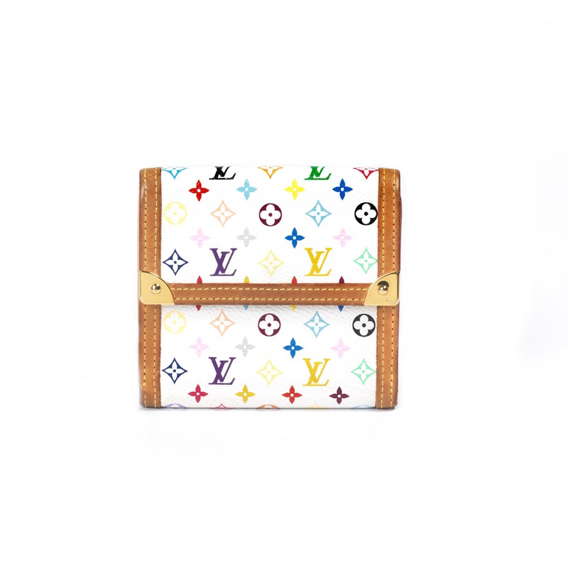 LOUIS VUITTON PORTAFOGLIO ED. SPECIALE TAKASHI MURAKAMI In tela Monogram multicolor su base panna con bordi in vacchetta e dettagli in ottone; doppio scomparto: su un lato portaspiccioli e sull’altro spazio per soldi e 6 carte di credito. Dim. cm 12x10x2