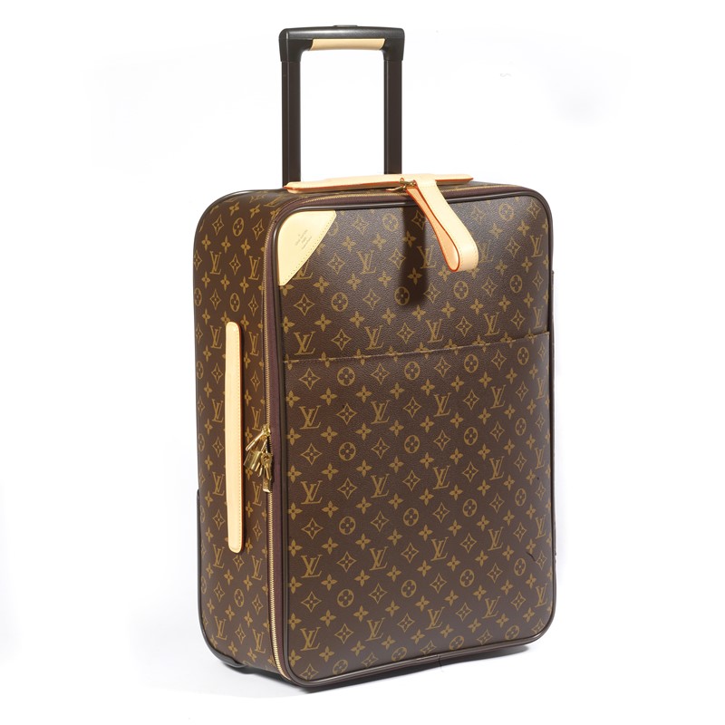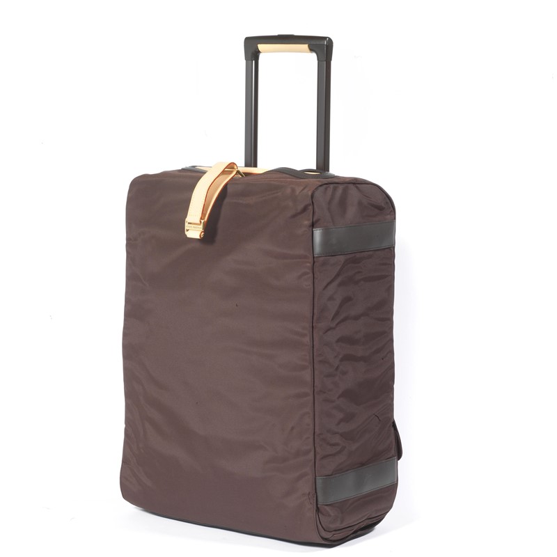 In tela Monogram con rifiniture in vacchetta, con manico telescopisco. Maniglia in vacchetta e doppio cursore. Tasca esterna e interno foderato.