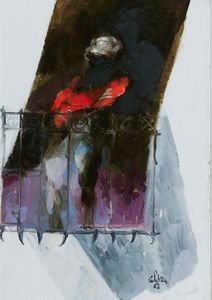 Tecnica mista su carta, cm. 69,5x47 Firmato in basso a destra.