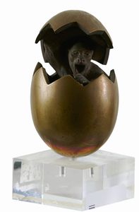 Multiplo in bronzo, cm. 7 su base di plexiglas.
