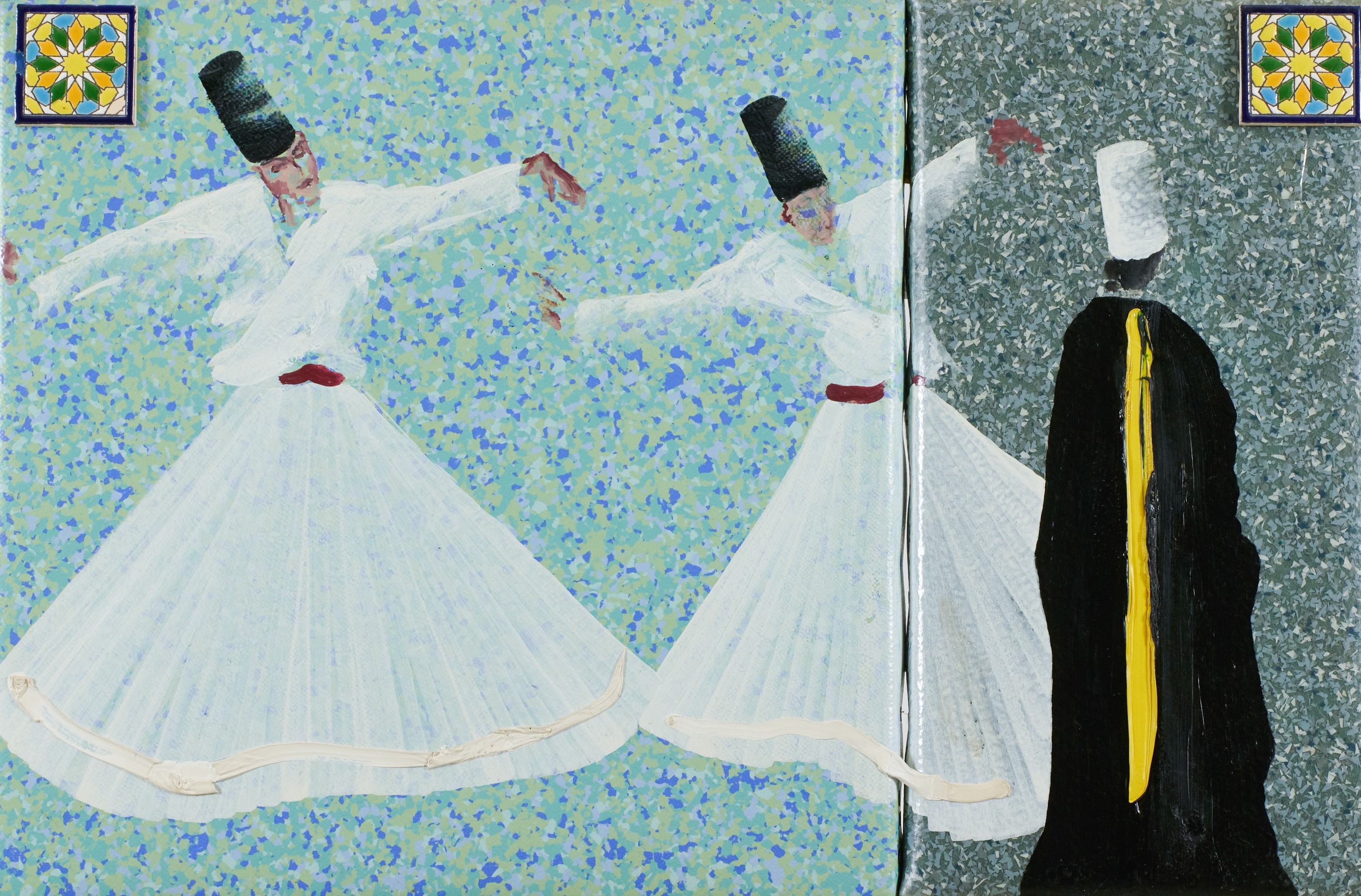 Olio e applicazioni in ceramica su linoleum doppia tela, cm. 40x60