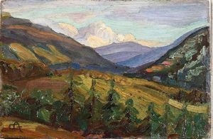 Pittore del XX secolo Paesaggi montani sovrapposti