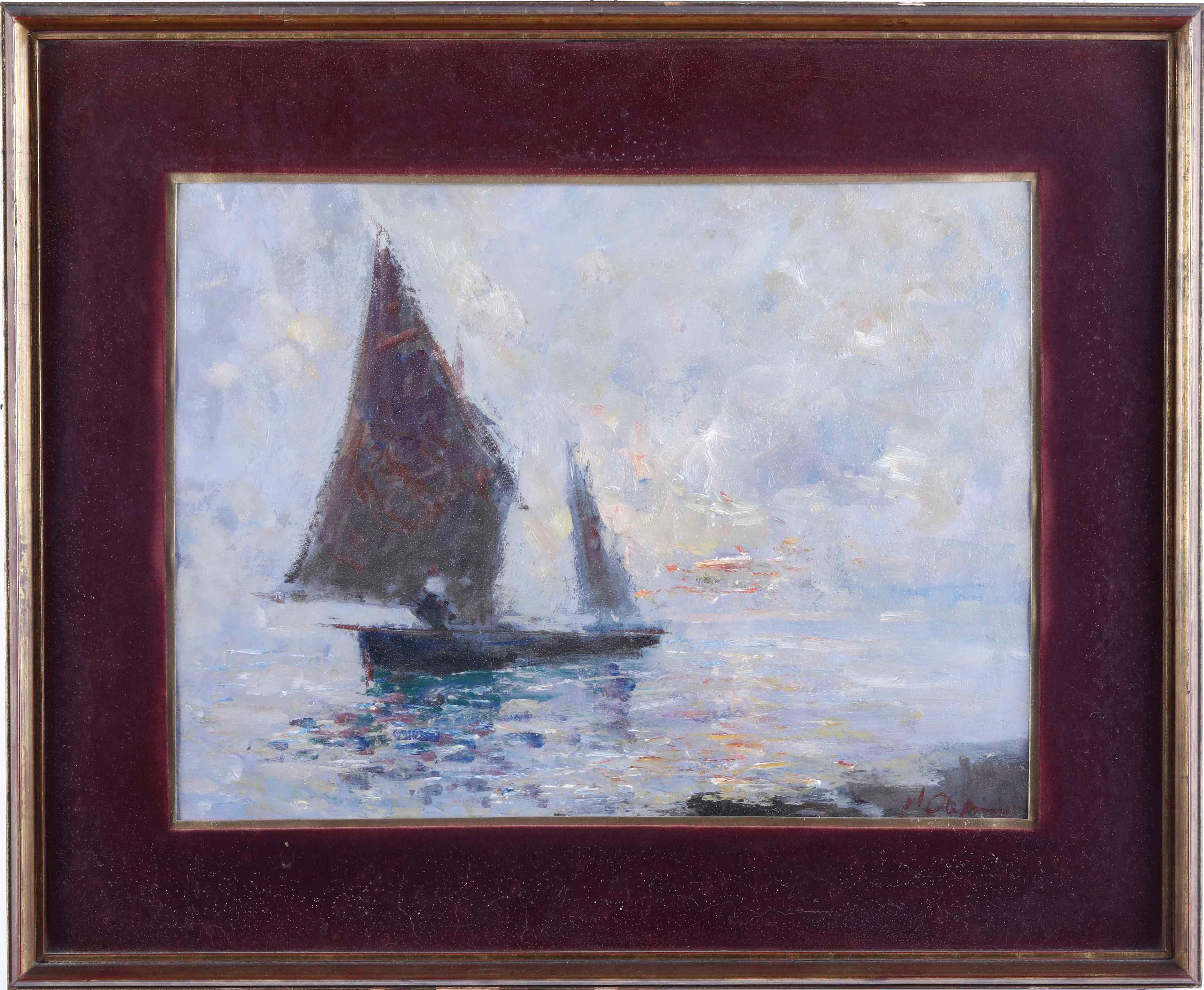 Pittore del XIX-XX secolo Paesaggio con barca a vela
