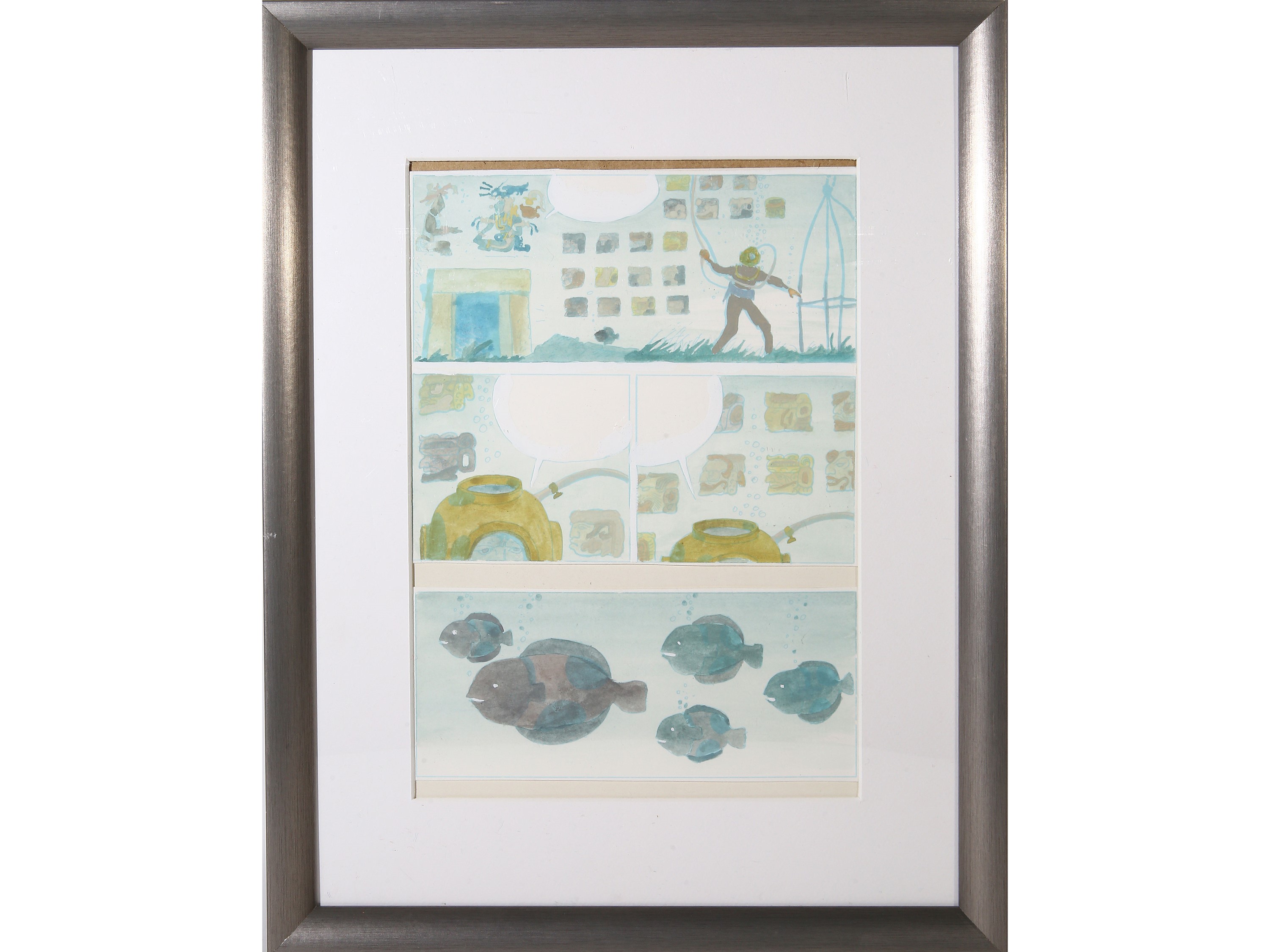 due acquerelli su carta applicati parzialmente a cartoncino, in un'unica cornice