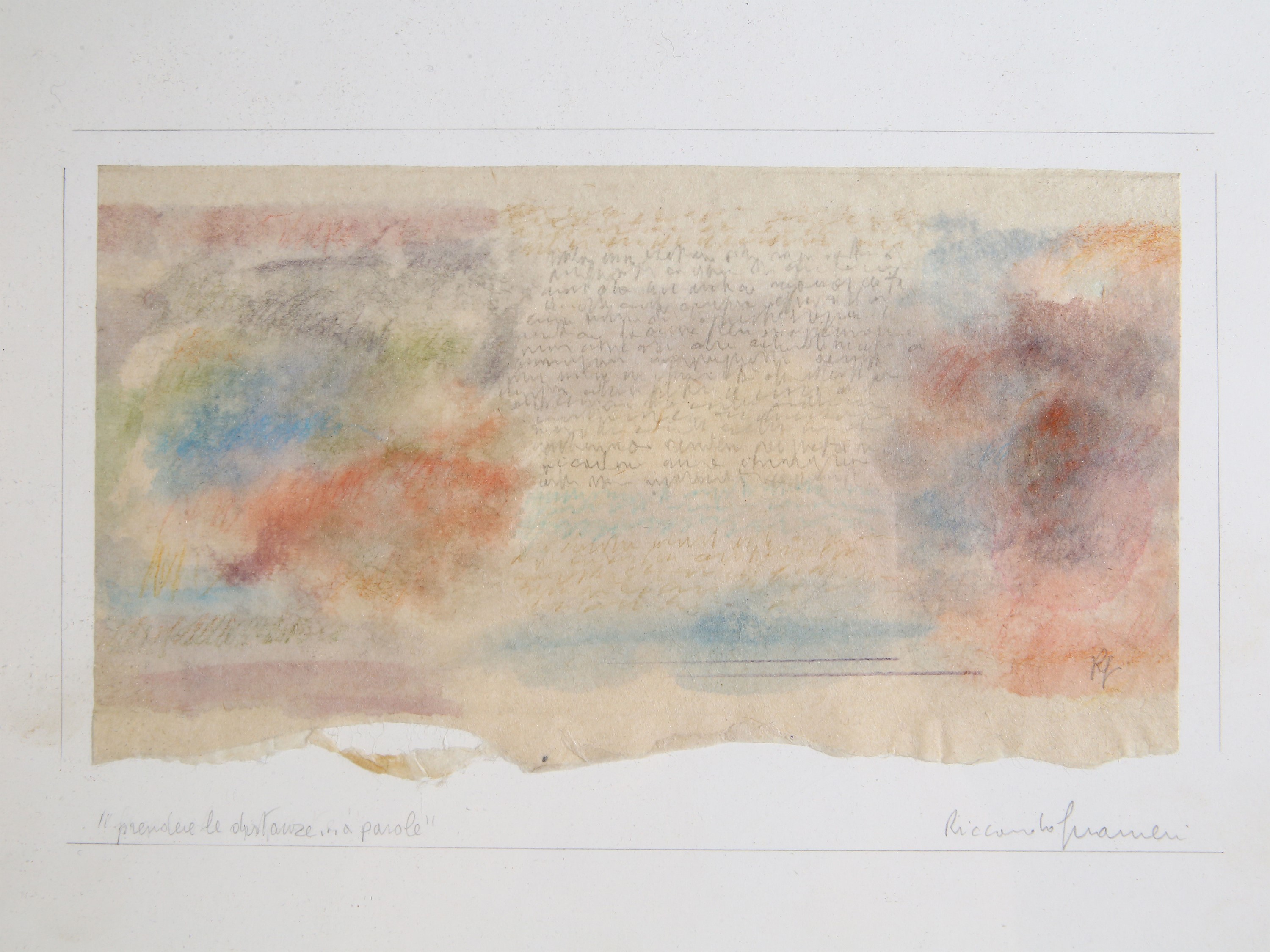 acquerello e grafite su carta applicata ad altro supporto cartaceo, siglata, firmata e titolata sul supporto cartaceo, in cornice