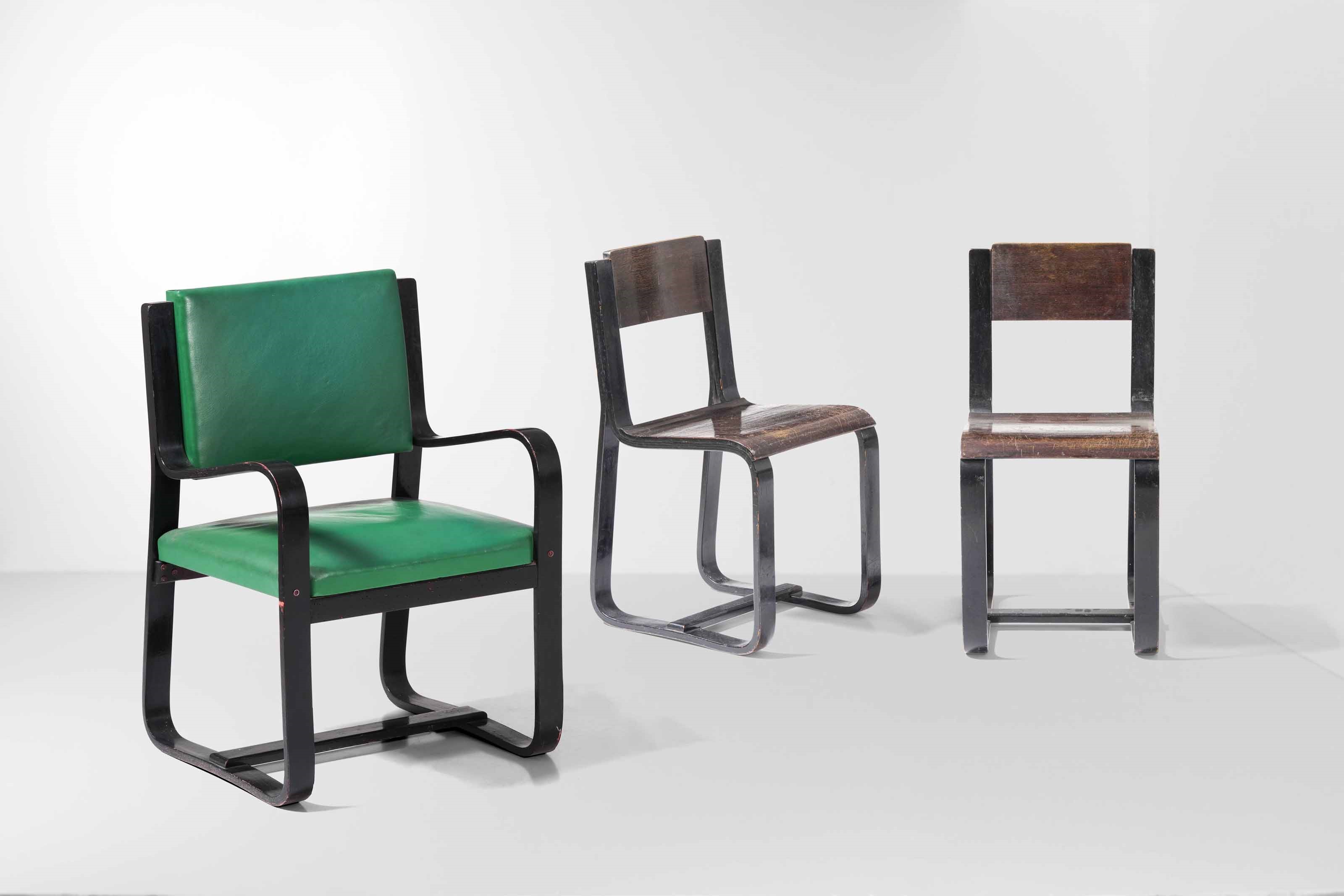Sedie: cm 41x45 x h 82; Poltrona: cm 60x58 x h 90.