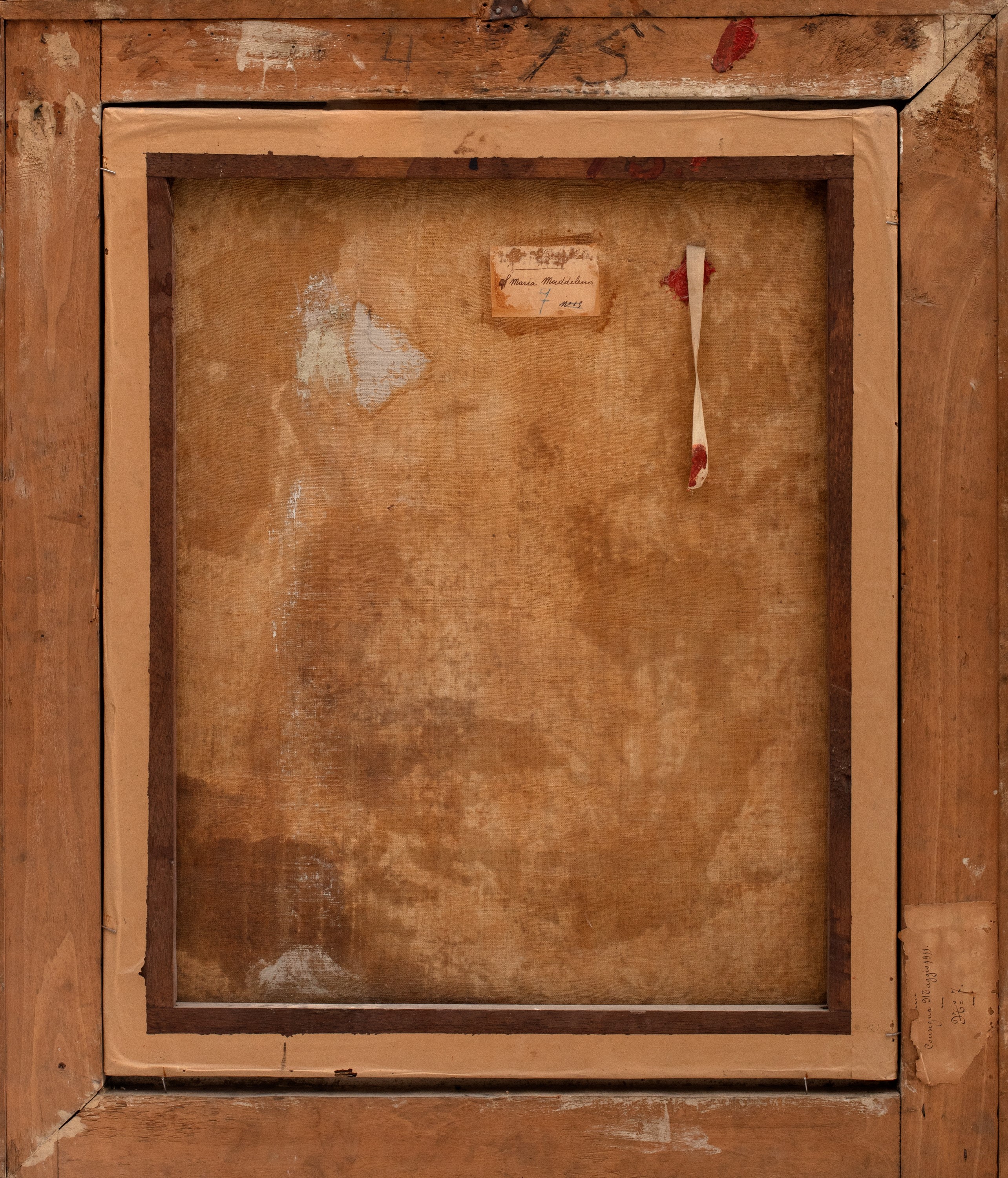 sul retro antica etichetta di collezione con indicazione del soggetto