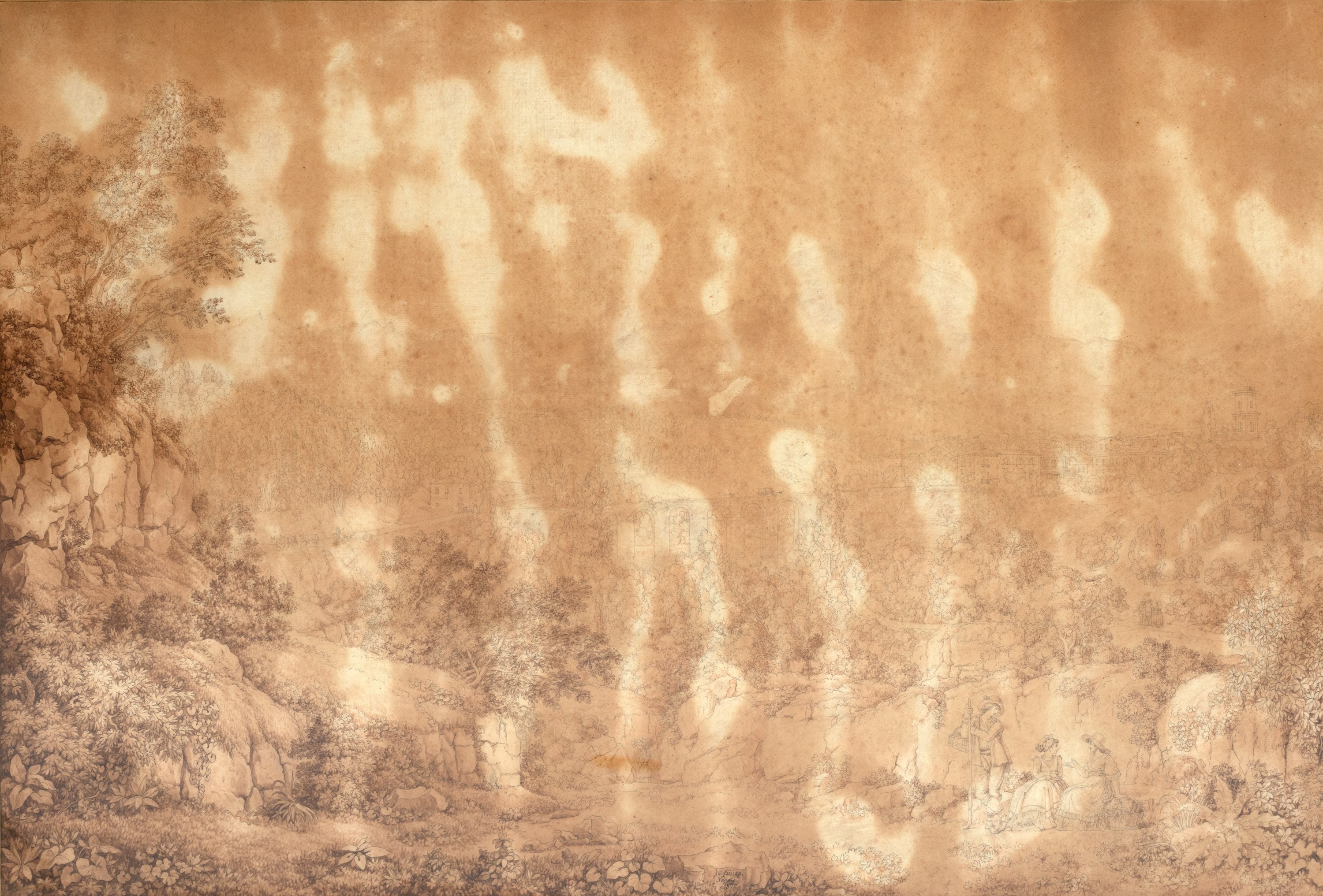 penna e inchiostro bruno acquerellato su carta, cm 57,5 x 84