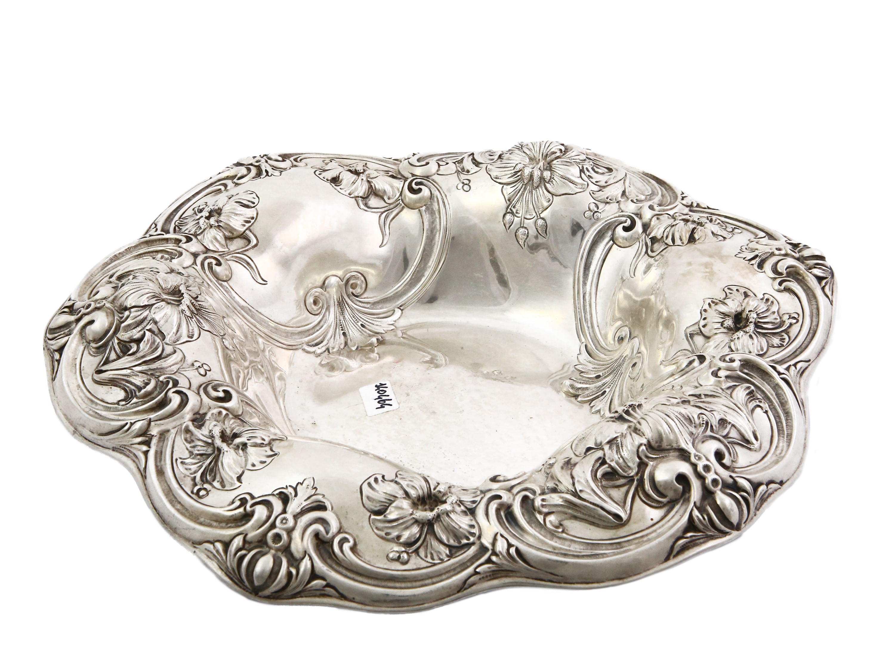 Usa, inizio del XX secolo realizzato a corolla, tesa smerlata sbalzata da motivi floreali tra volute di gusto Art Nouveau