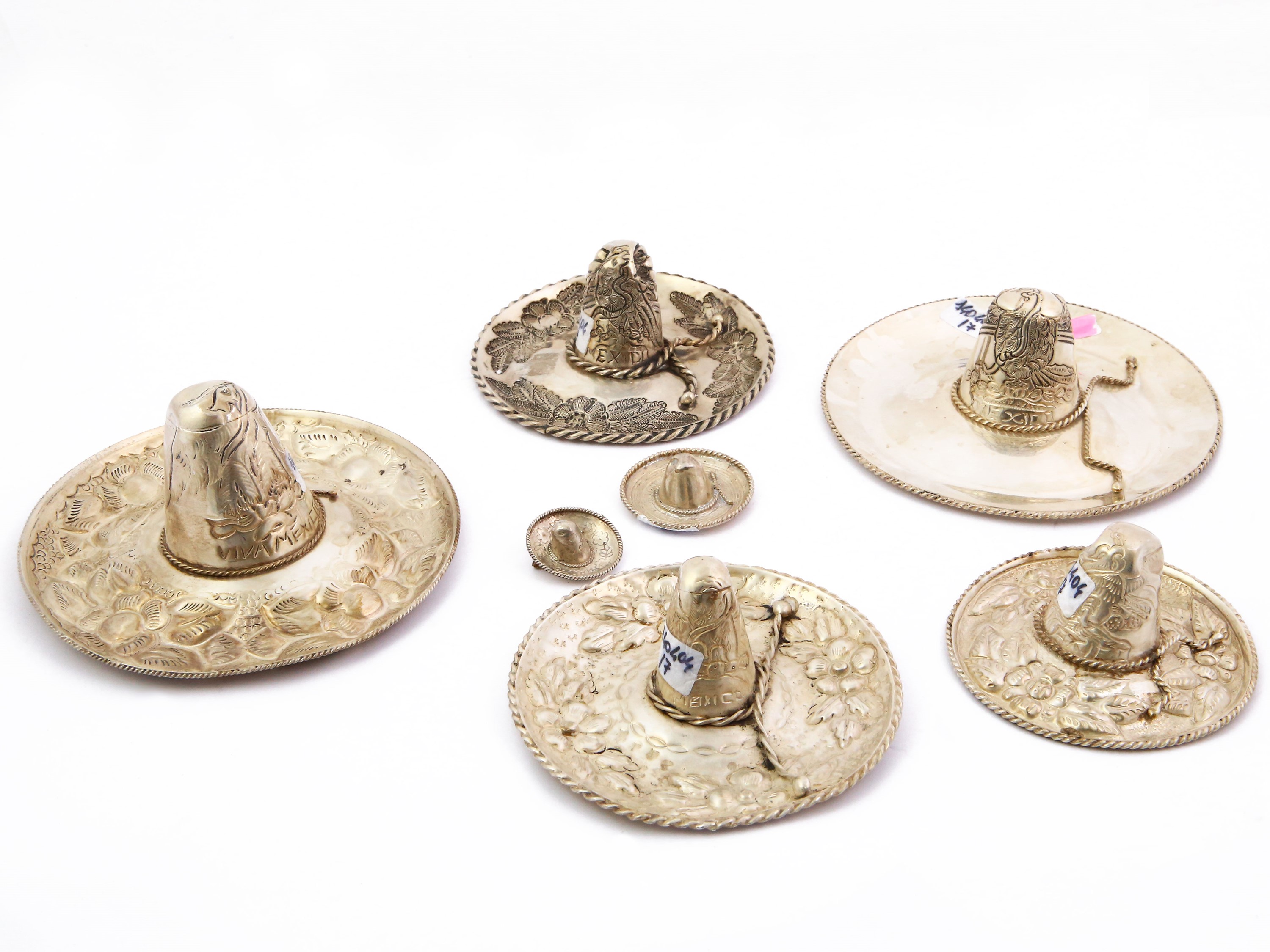 Collezione di sette sombreri in argento