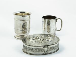 Lotto di curiosità da scrivania in metallo argentato e argento
