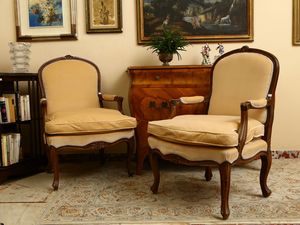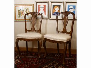 XX secolo realizzate in stile settecentesco, schienale centrato da intaglio floreale, braccioli desinenti a ricciolo, [..]