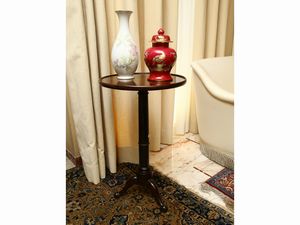 h cm 77, diam cm 48 piano di forma rotonda, fusto a colonna su base tripode, lievi difetti e restauri