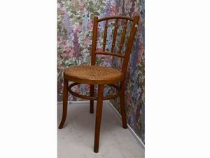 attaccapanni h cm 190 (3) Austria, inizio del XX secolo schienale con cartella a birilli e seduta in paglia di [..]