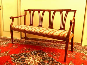 lungh cm 160 fiine del XVIII secolo schienale tripartito con cartelle traforate con motivi a doppio arco, braccioli [..]
