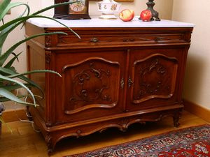 h cm 106x78x58 Provenza, prima metą del XX secolo piano in marmo bianco, un cassetto nella fascia, doppio sportello [..]