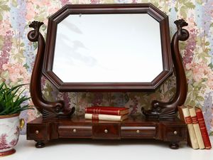 h cm 154x90x50 (2) inizio del XX secolo con specchiera tripartita con ante pieghevoli, piano in marmo rosso di [..]