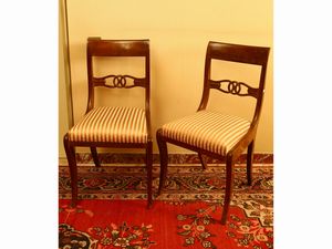 Inghilterra, XX secolo schienale sagomato con cartella centrale, gambe anteriori a birillo, sedute imbottite [..]
