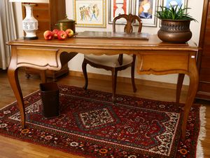 XX secolo realizzata in stile settecentesco, due cassetti ai lati, piano parzialmente rivestito in pelle color [..]