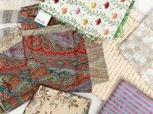 h cm 270x130 circa seconda metà del XX secolo ornate ai lati con passamaneria spigata beige e color senape, difetti [..]
