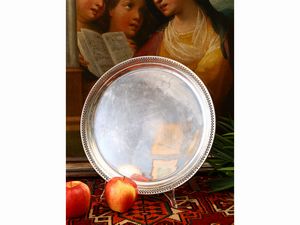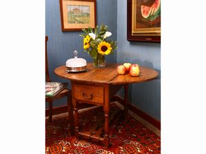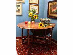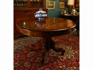 h cm 76, diam cm 114 seconda metà del XIX secolo piano allungabile di forma circolare con bordo a becco di civetta, [..]