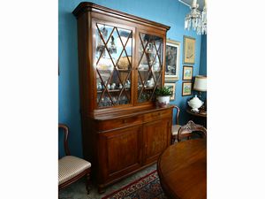 h cm 223x150x60 metà del XIX secolo cappello aggettante, due sportelli con vetri soffiati delimitati da cornici [..]