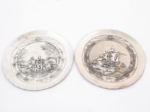 gr 1000, diam cm 22 1971 e 1972 entrambi istoriati con scene legate alla scoperta dell'America