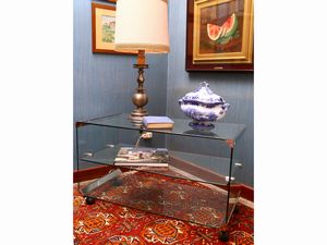 Tavolino carrello in cristallo e acciaio, Gallotti & Radice