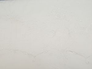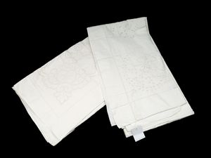 cm 258 cm x 170 (13) metà del XX secolo ricamata con motivo di rose, con piccoli intagli e con sfilature, bordo [..]