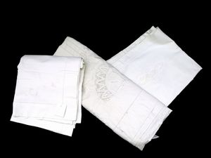 cm 160x140, cm 250x160 e cm 210x124 (23) seconda metà del XX secolo composto da una tovaglia in lino beige [..]