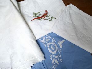 Tovaglia in lino bianco ricamata a mano