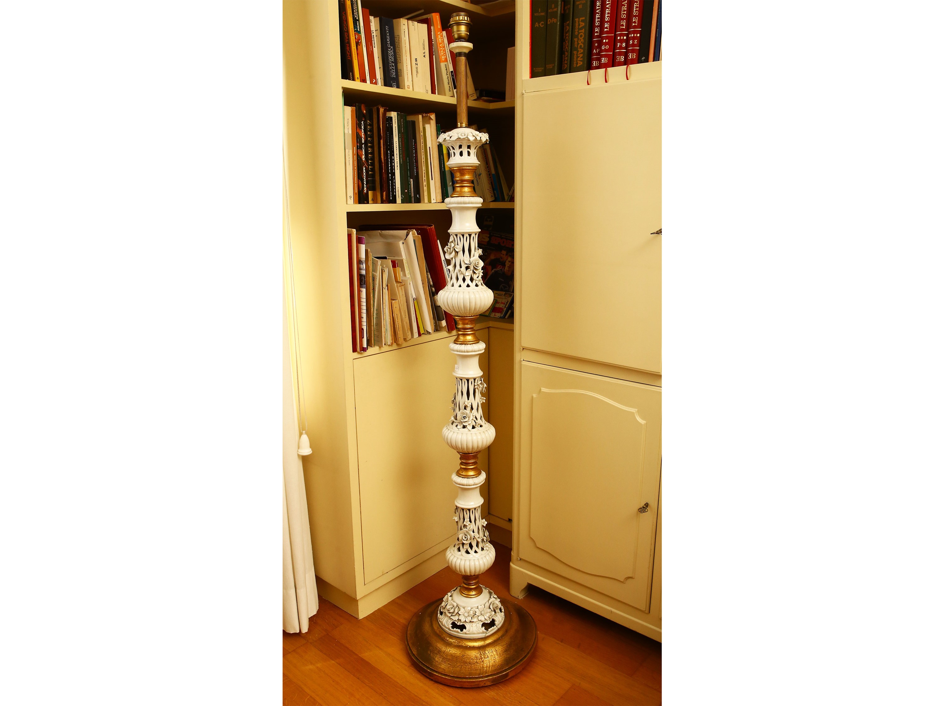 XX secolo realizzata con elementi torniti e traforati a grata alternati ad altri in legno dorato, alcune mancanze e restauri