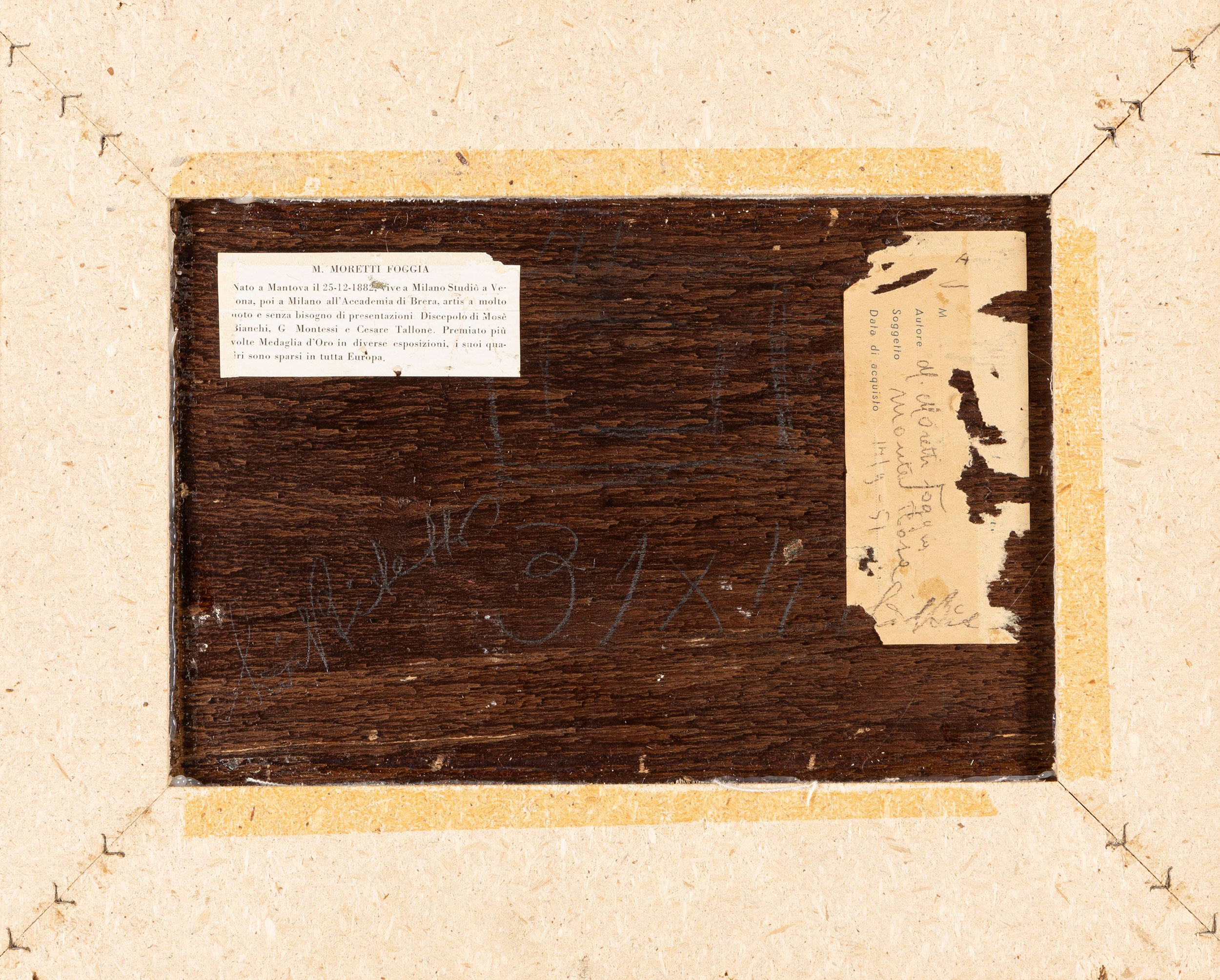 Sul retro, vecchio cartellino con riferimenti all'artista e al dipinto.