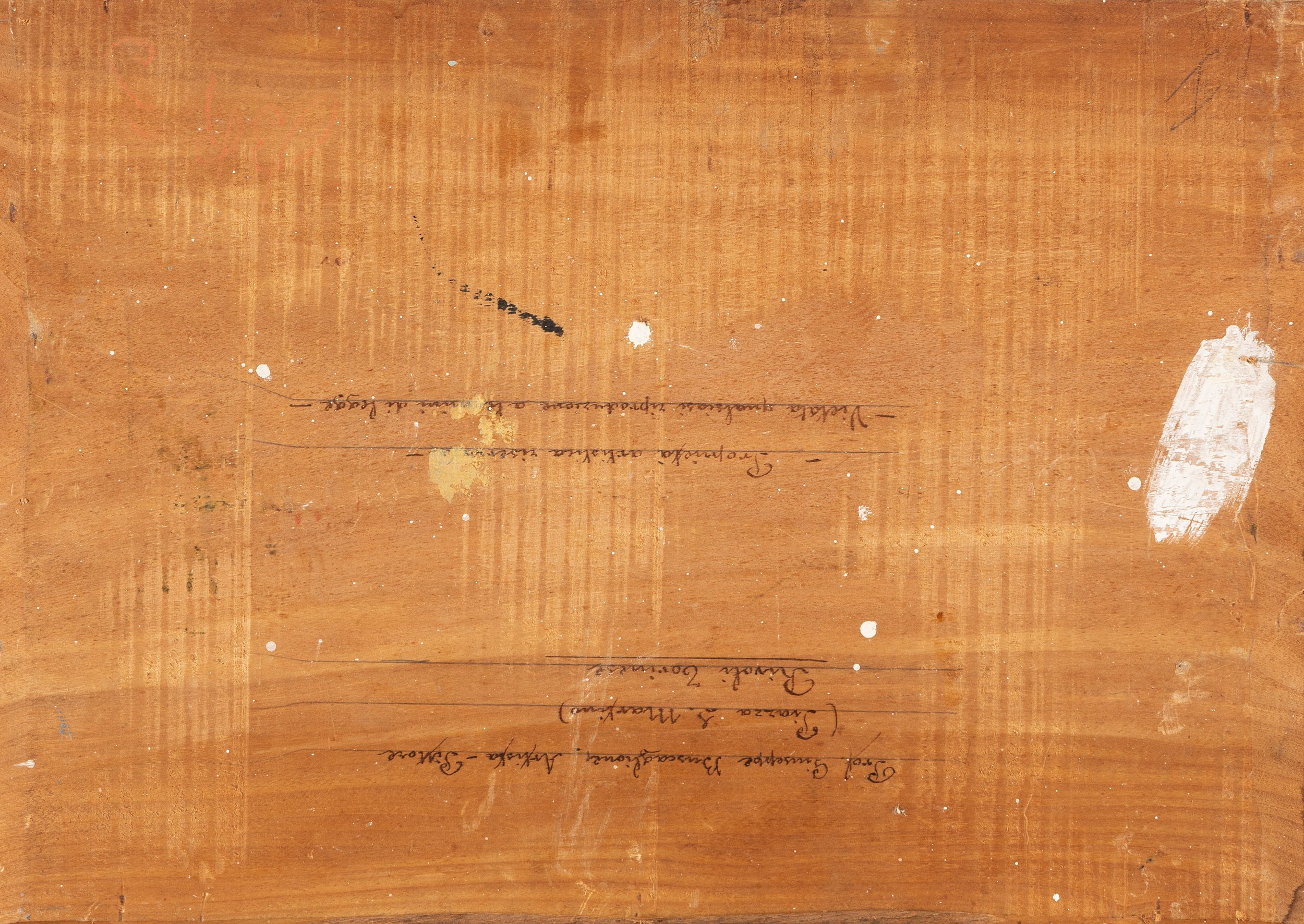Sul retro, scritta di mano del pittore con l'indirizzo dello studio a Rivoli Torinese.