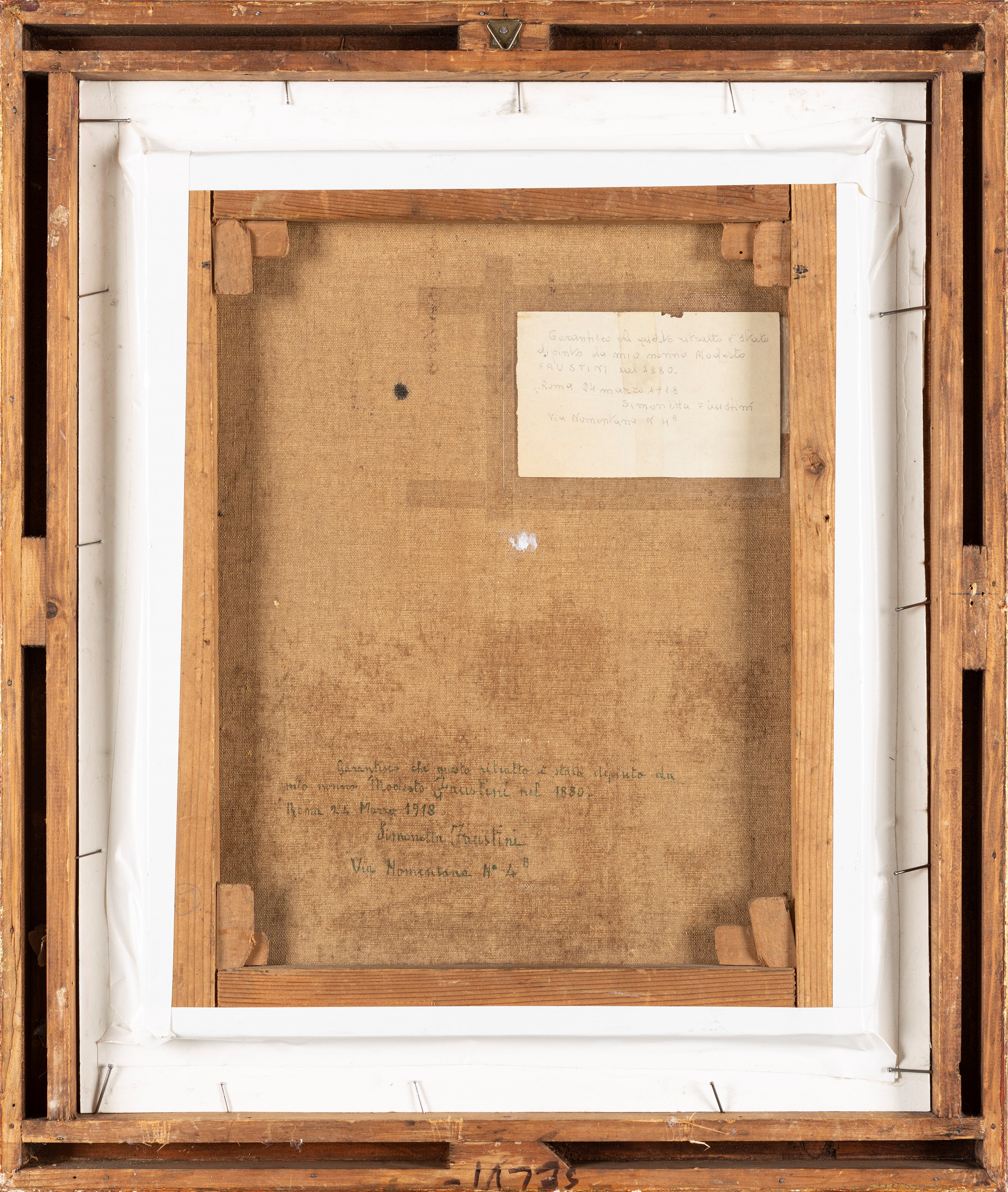 circa 1880 Sul retro, sulla tela, autentica a penna della nipote Simonetta Faustini in data 24 marzo 1918, Roma.
