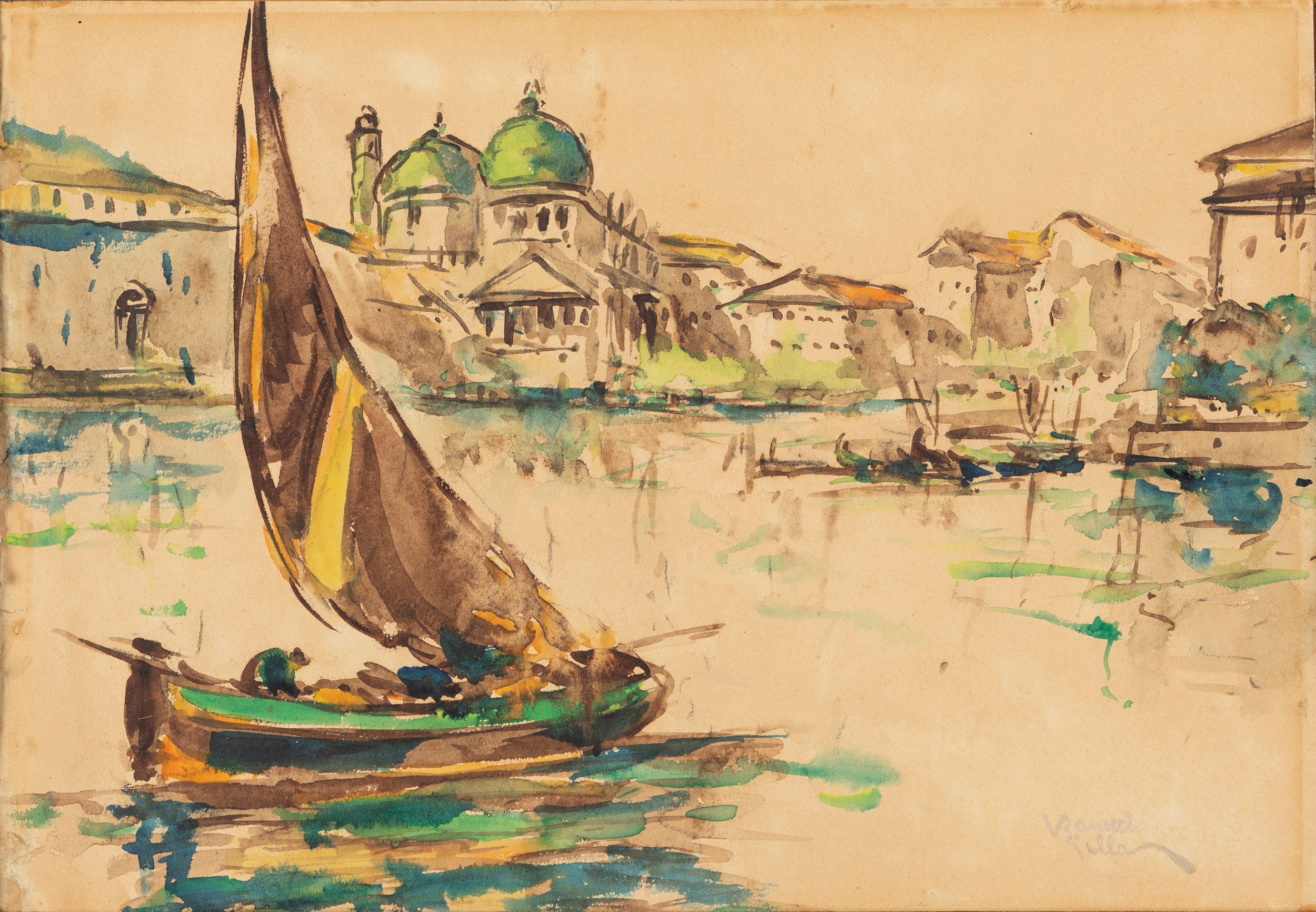 acquerello su cartoncino applicato su cartone, cm 21 x 31