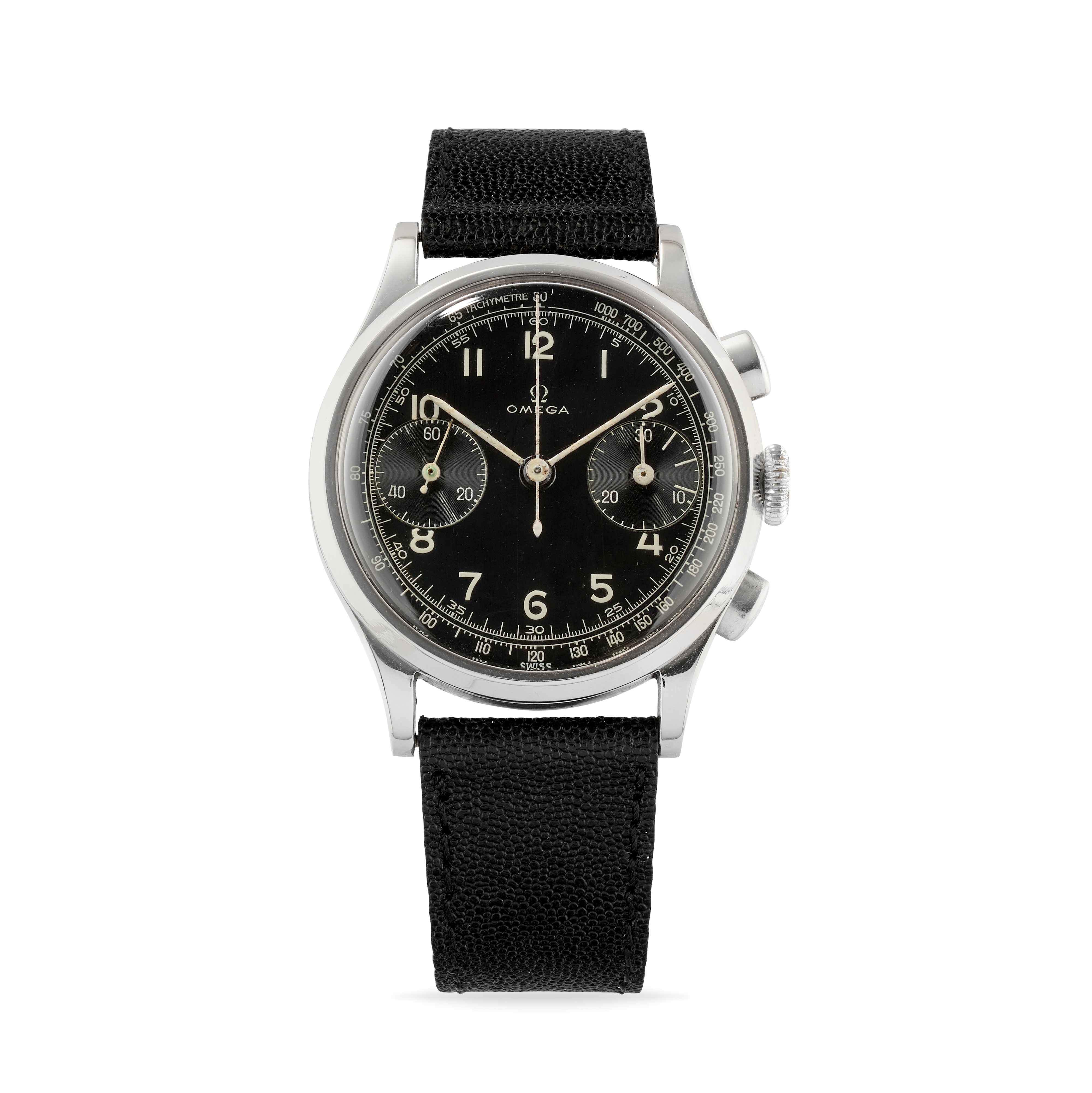 Note: Il calibro 33.3 di Omega é uno dei movimenti cronografici piú ricercati mai stati realizzati. Prodotto originariamente da Lemania nel 1933 per cronografi monopulsante, fu ridisegnato a fine anni 30 da Omega per essere alloggiato nei propri cronografi a due pulsanti piú importanti.