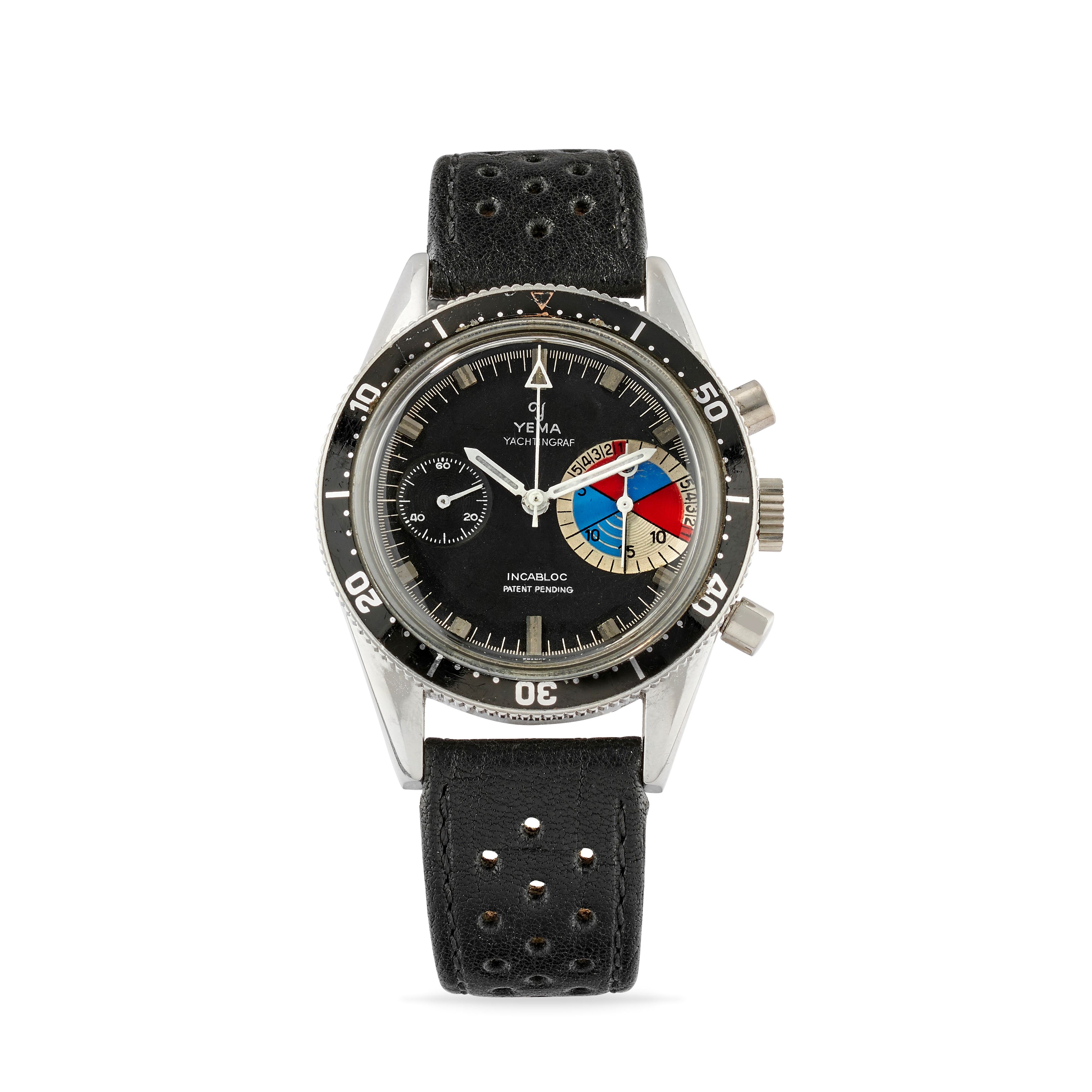 Quadrante nero, contatore oversized per countdown regata, indici applicati luminescenti.