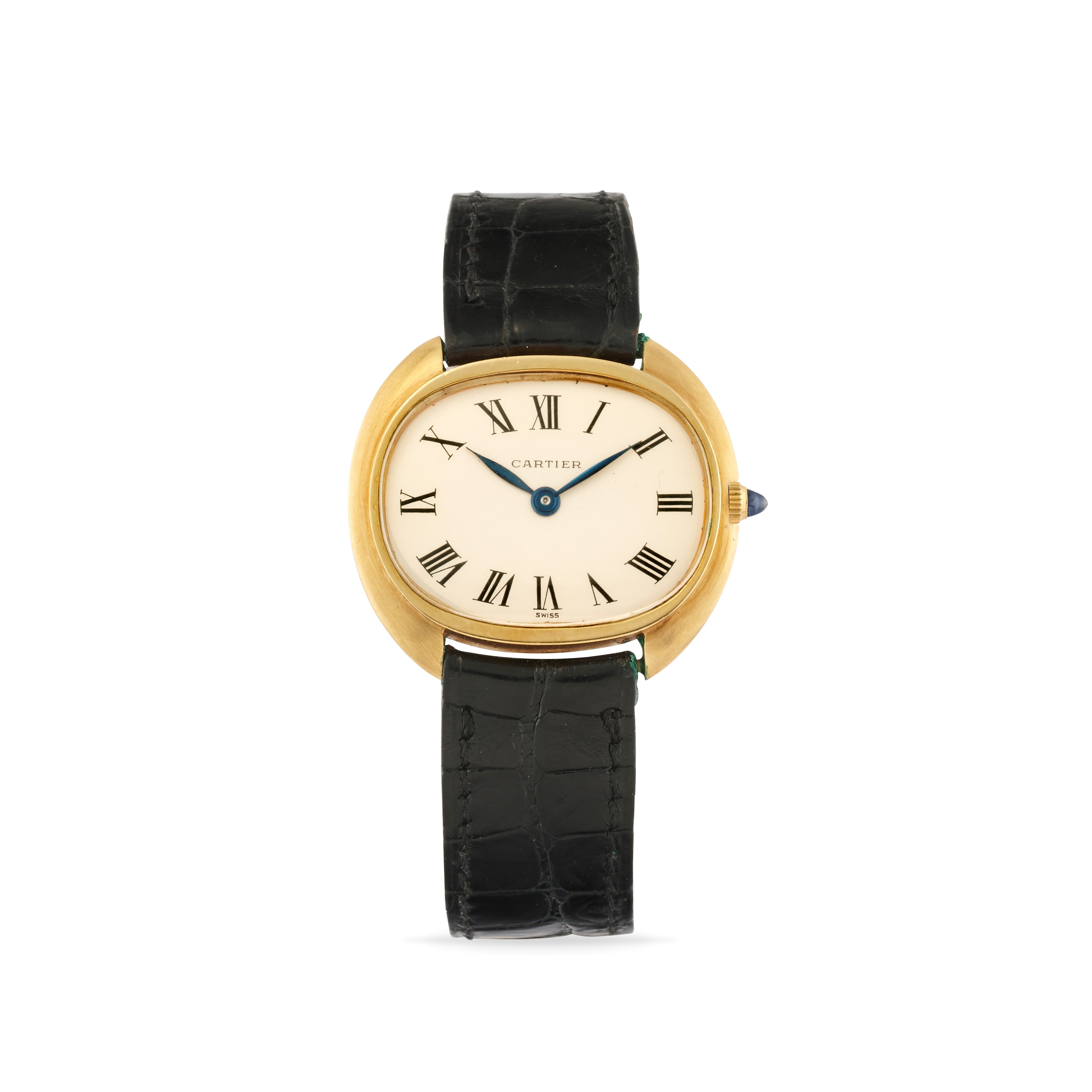 Cinturino in pelle e fibbia deployante Cartier in oro 18k.
