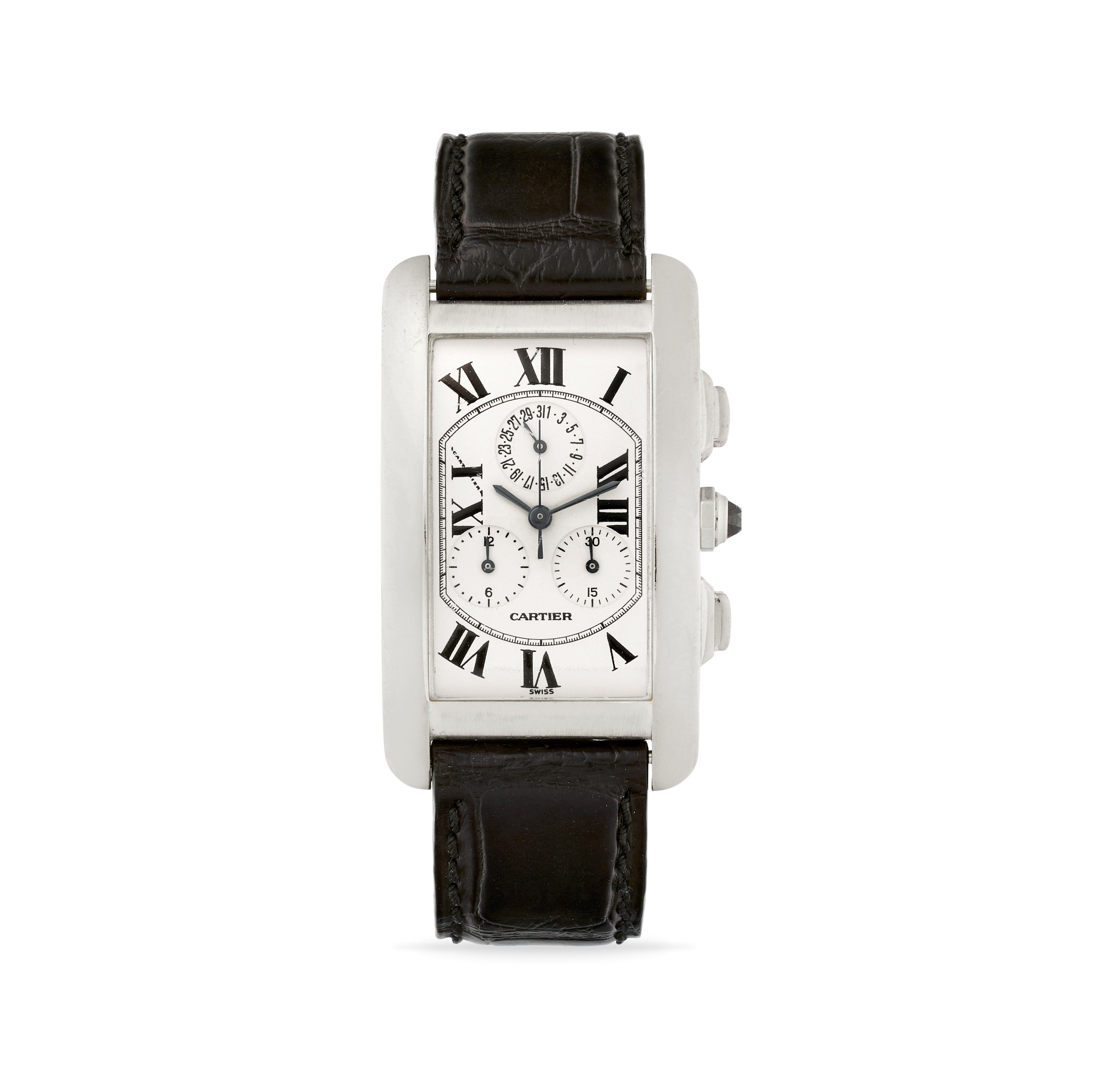 Cinturino Cartier in pelle e fibbia Cartier in oro bianco.