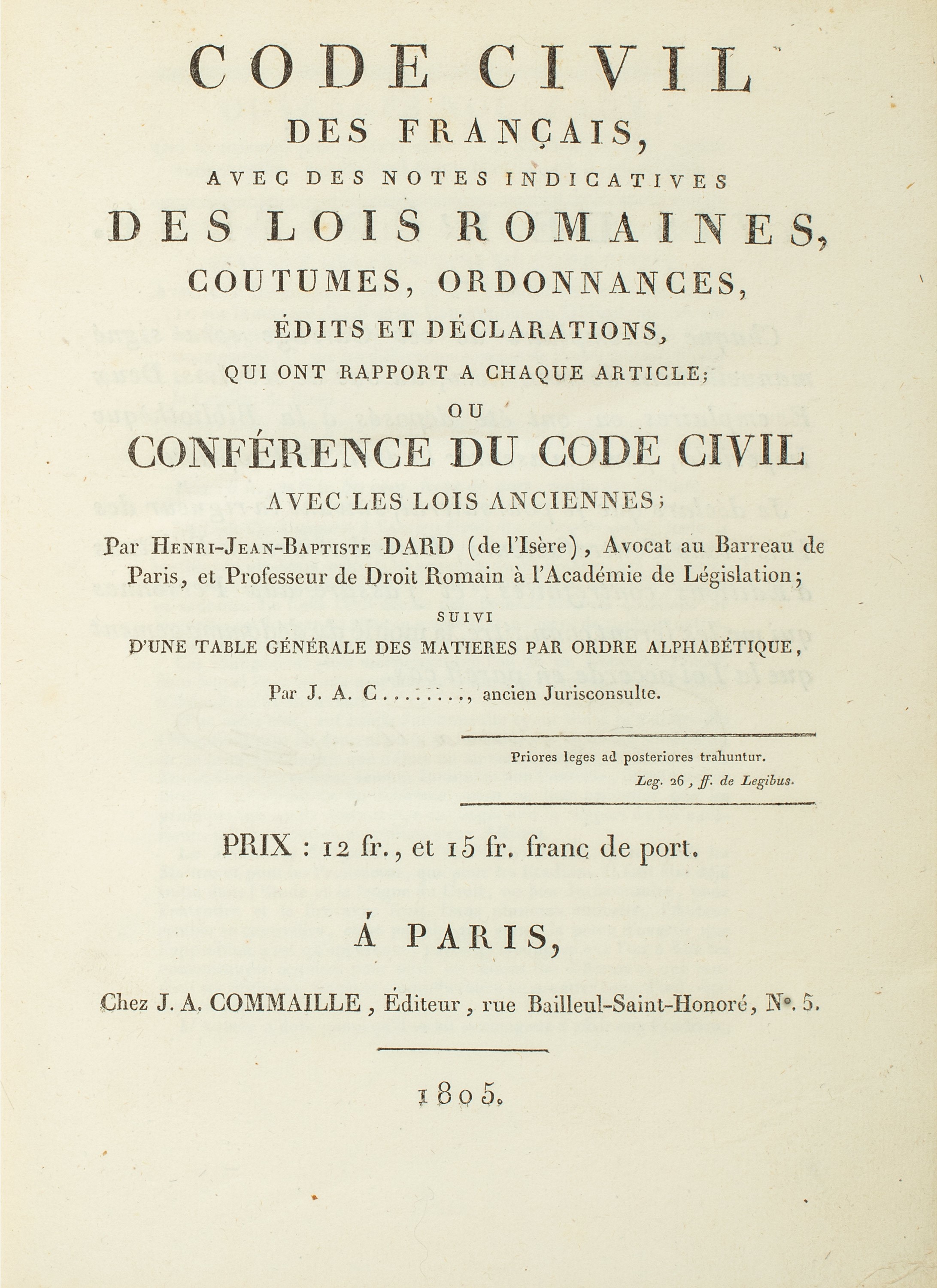 Code civil des Français avec des Notes indicatives des Lois Romaines