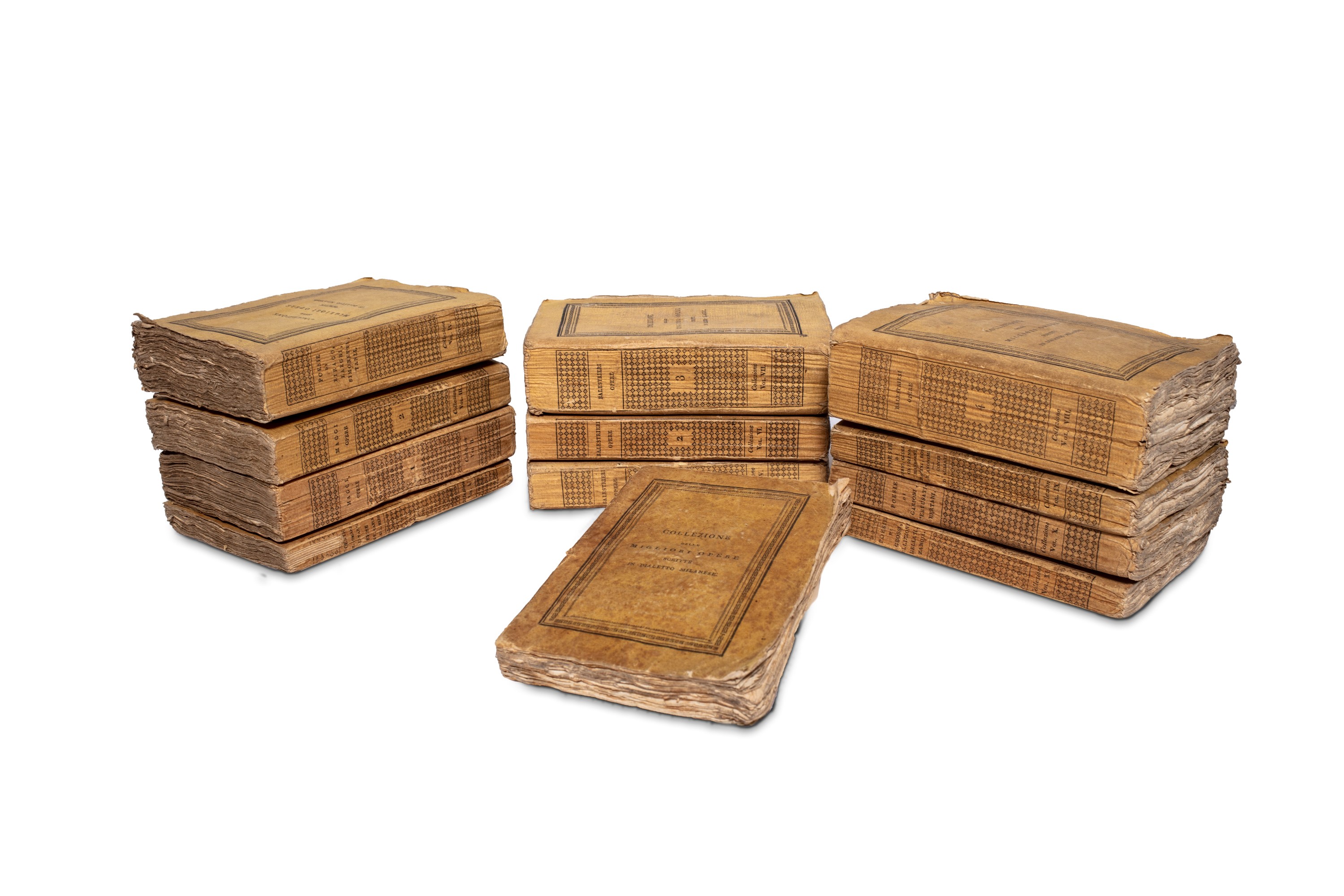 1816 Milano, Pirotta Milano, 1816-17. In 12°. 12 voll. Esemplari in barbe, occhietti e frontespizi, lievi fioriture sparse, un piccolo foro di tarlo su pochi fascicoli, brossure editoriali in cartoncino floscio, qualche difetto.