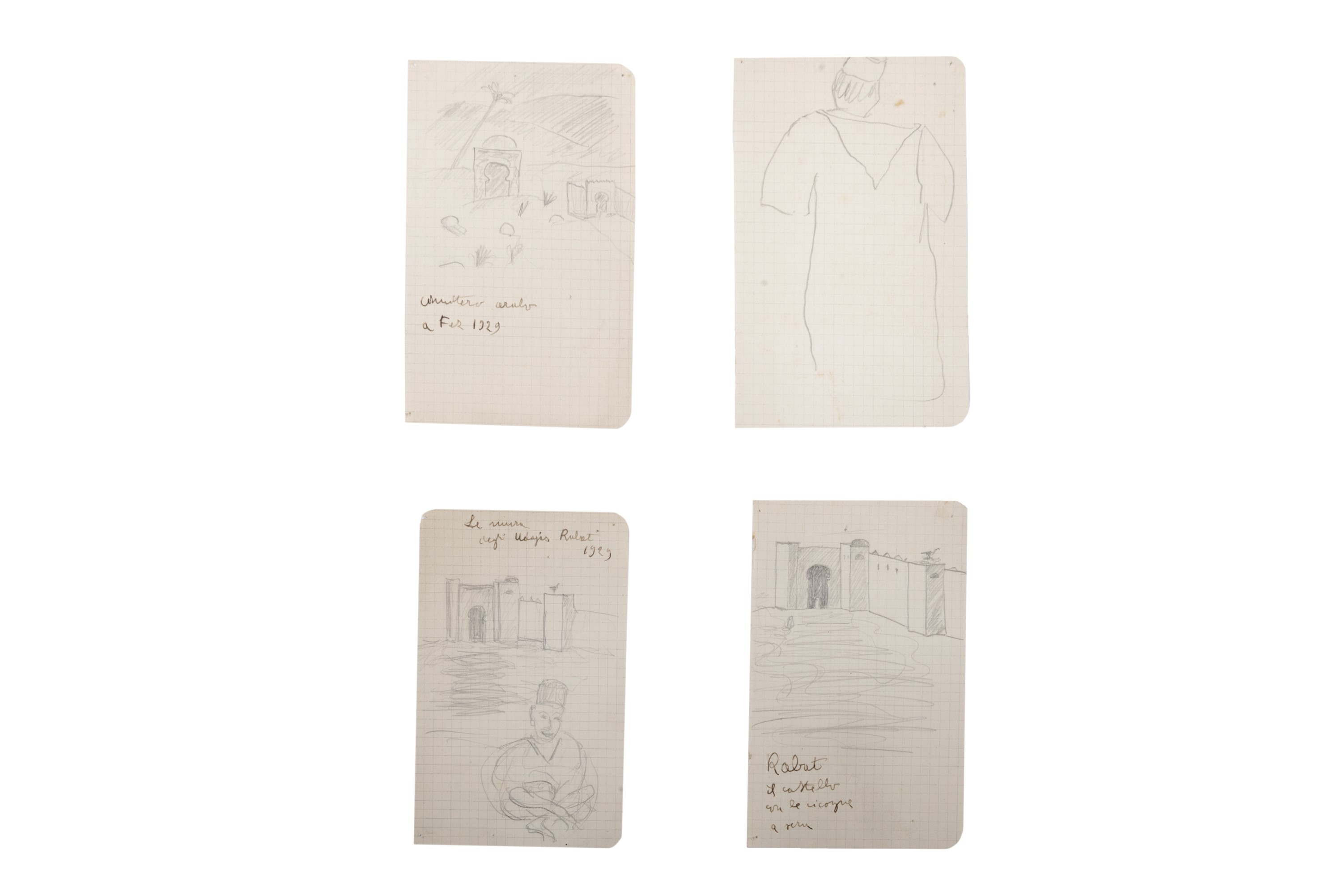 1929 Splendido insieme che testimonia la grande passione, non dilettantistica, di Giovanni Comisso per la pittura, lo schizzo, l'abbozzo, il disegno. Nel lotto, 12 disegni di varie misure, alcuni a inchiostro semplice, altri acquarellati, a carboncino, a pastello e a semplice matita; insieme nel lotto una lettera di Ugo Ojetti a Comisso, una cartolina postale del Vittoriale indirizzata a Ciro Cristofoletti con firme di Comisso e altri; in un raccoglitore blu sono conservati disegni e caricature di Cristofoletti, Ugo Ojetti, Giuseppe Novello, Mario Velani Marchi, Cesare Monti, Enzo Morelli, dell'Architetto Serafini e di Fabiano.